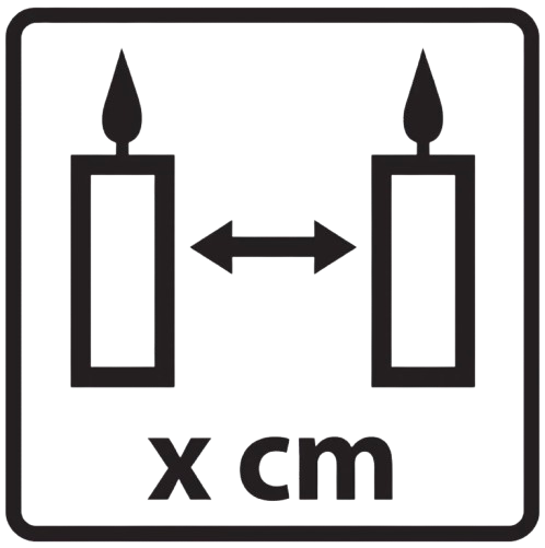 Keep Candles X Cm Apart - This pictogram instructs customers to keep their candles a set distance apart so that they burn evenly and safely.